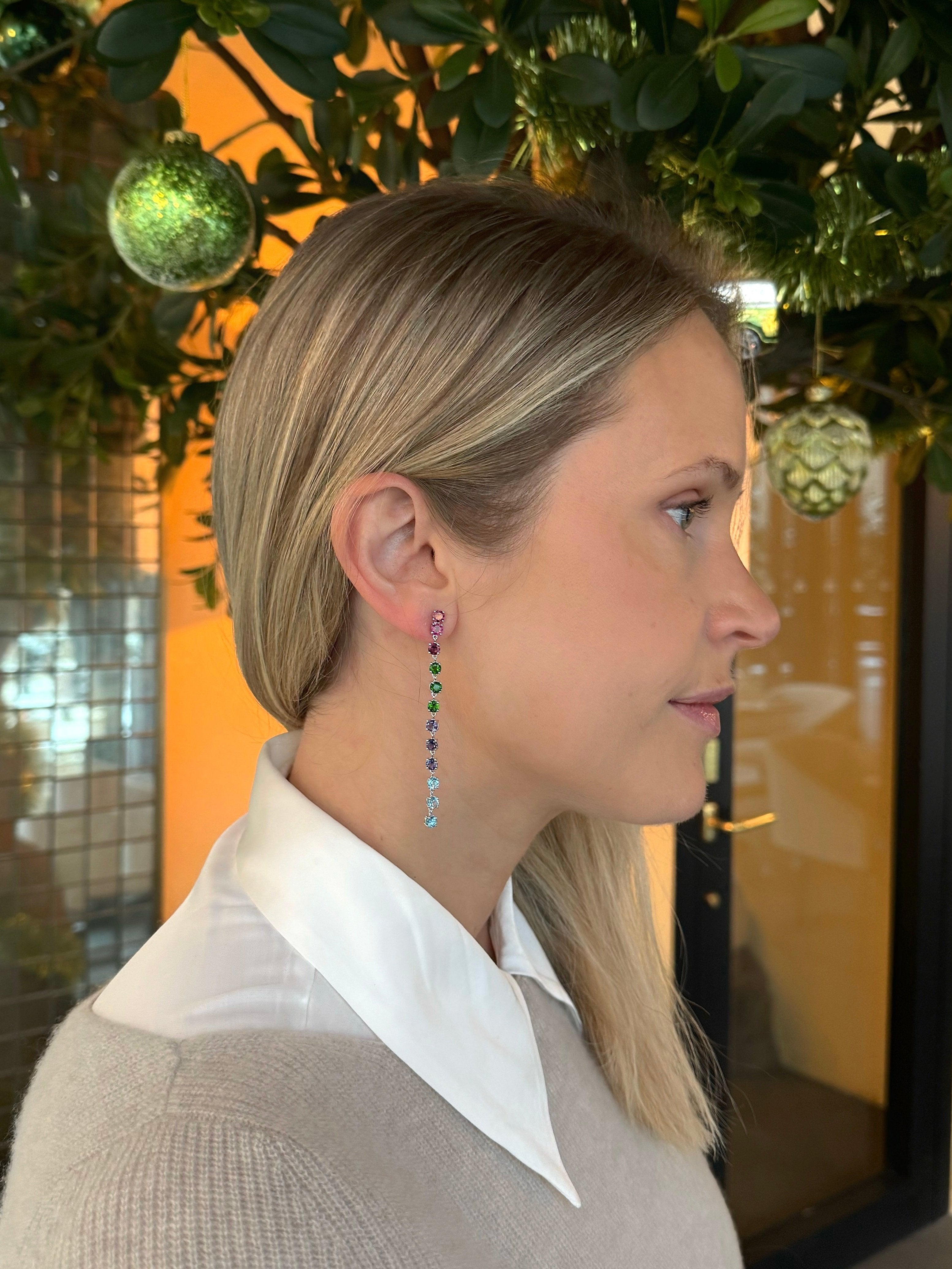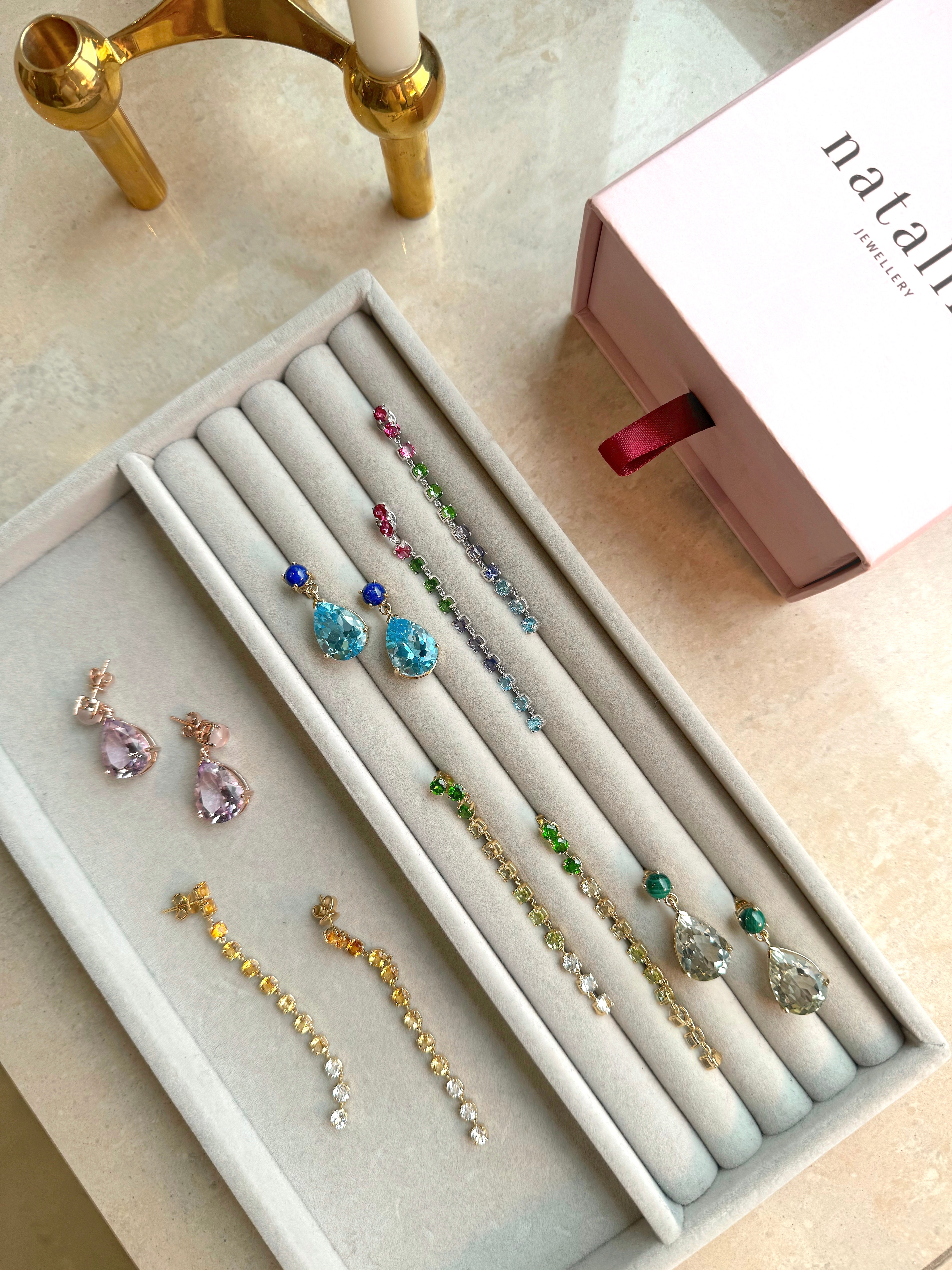 Add a touch of glamour and sparkle to any occasion with these gorgeous sparklers. Using 12 various different gems for stunning ombre effect or just a wow colour moment, these earrings are made of mother nature's most coveted gems. Please contact us if you would like more gem options.