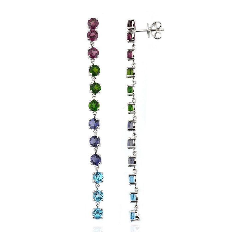 Long dangle multi-gem earrings, 14K gold or rhodium plated 925 sterling silver