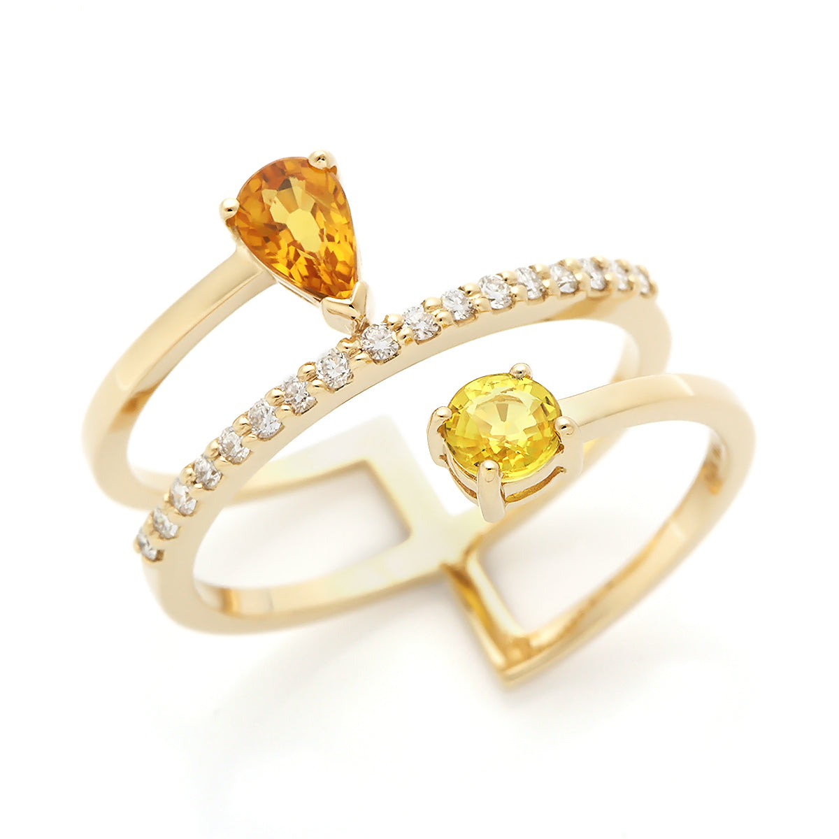 Fire Diamond Ring with Yellow and Orange Sapphires