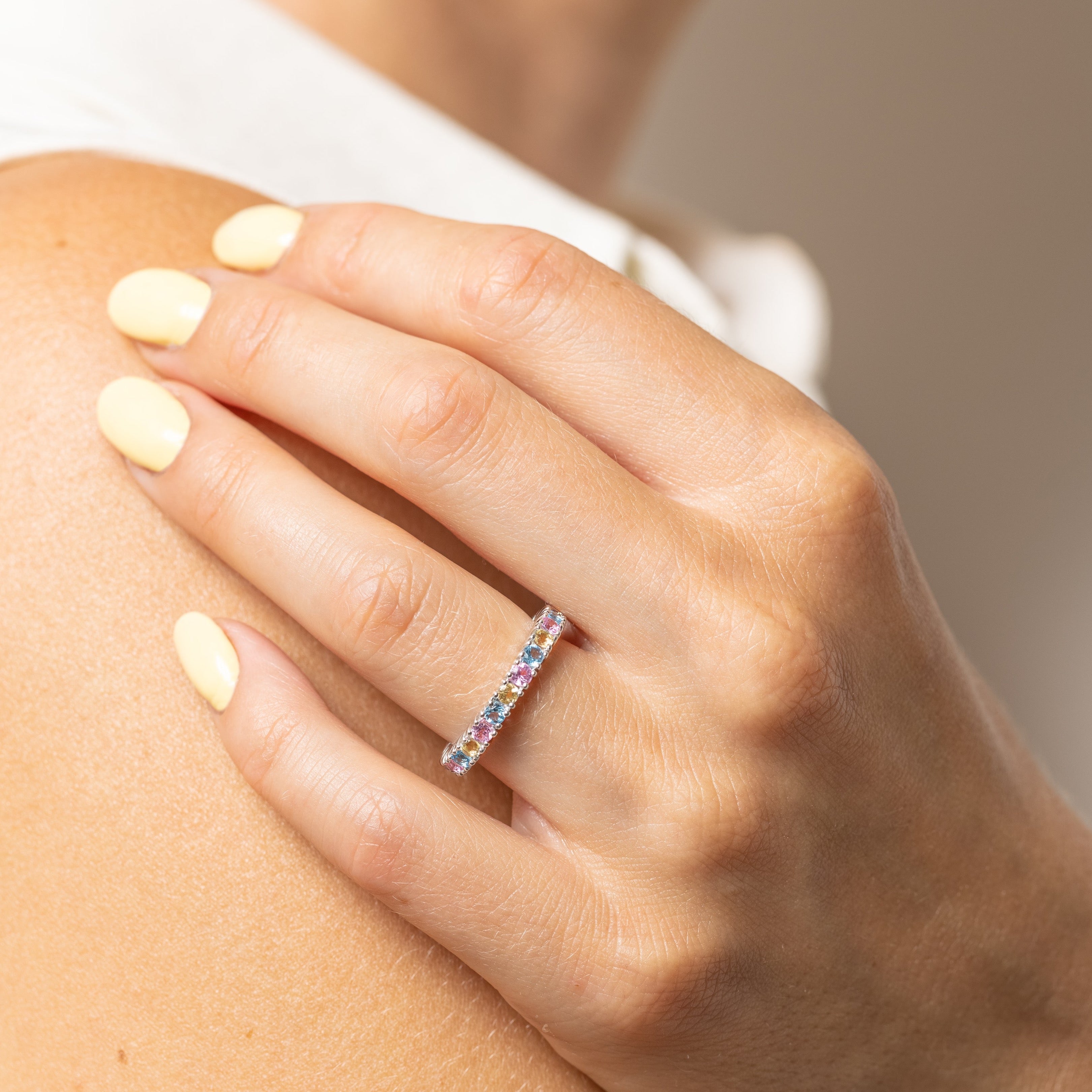 - 8 Swiss blue topaz, 8 pink sapphire and 8 lemon quartz, each 2,5 mm, 1,52 tcw